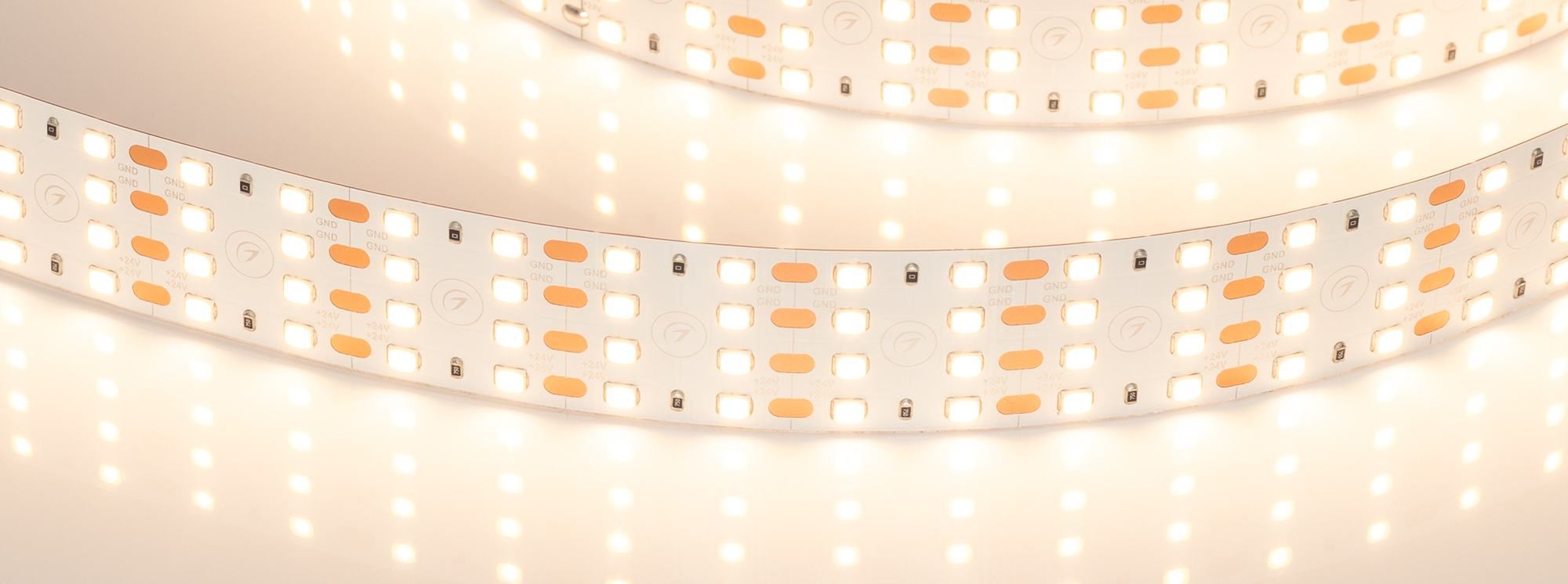 Светодиодная широкая лента UL серии A320. Светодиоды SMD 2835, 320 шт/м, белая плата шириной 24 мм, скотч 3M. Цвет ТЕПЛЫЙ 2700K, индекс цветопередачи CRI>90, угол 120°. Питание 24 В, мощность 30 Вт/м (90 Вт на 3 м). Размеры 3000x24x1.5 мм. Мин. отрезок 25 мм, 8 светодиодов. Цена за 1 м.