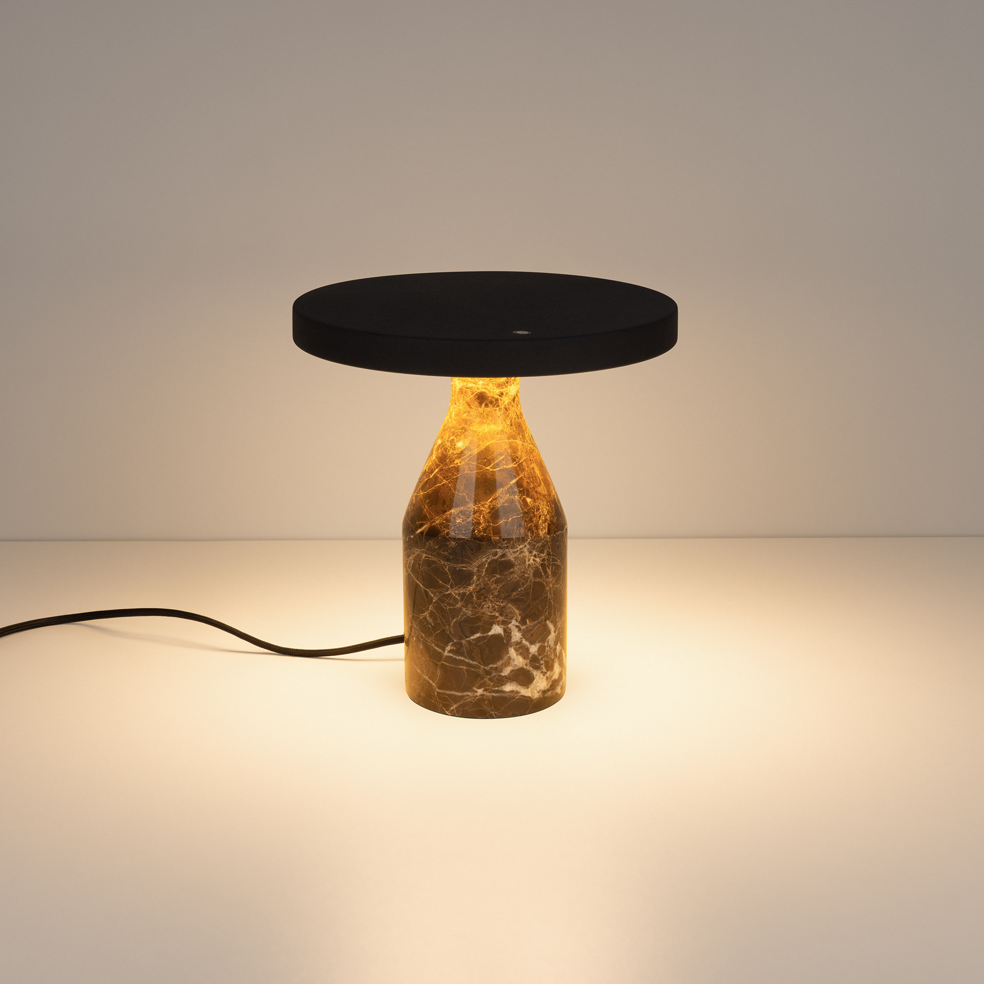 Настольный светильник CROOD. С изменяемой цветовой температурой 2700/3200/4000K, переключается коротким нажатием на сенсорную кнопку на плафоне, диммирование происходит за счет ее удержания. Мощность 7 Вт, св. поток 159 лм, 23 лм/Вт, CRI>94, угол 140°, напряжение питания 230 В. Черный плафон из алюминия, основание из мрамора, степень защиты IP20. Общая высота 240 мм. Габариты светового модуля DхH: 225 x 22 мм. Габариты основания DхH:: 100 x 220 мм. Пульсация <1%.